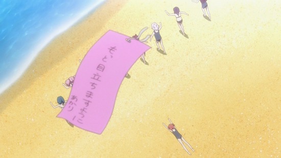 浴衣へ着替える前に砂浜で全員並んでる俯瞰シーンでも
