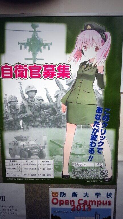 こんな絵を見て応募する奴なんて どうせキモオタクソデブかキモオタモヤシだけだろ 自衛隊の質を下げてどうするつもりなんだろ もっと屈強なガテン系とか凶暴なヤンキーが好みそうなのを使えよ
