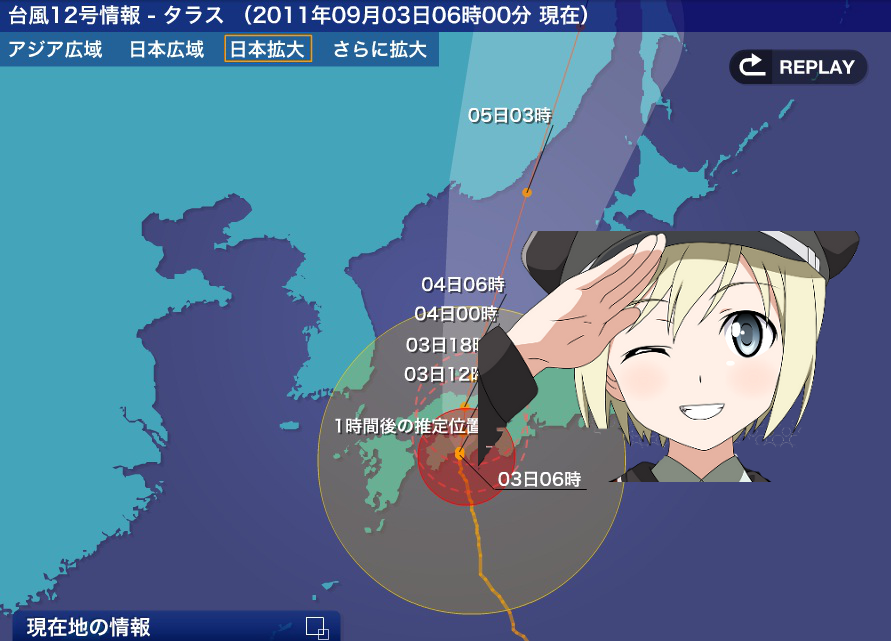 【速報】エーリカ…じゃなくて台風12号は時速15kmで北上中