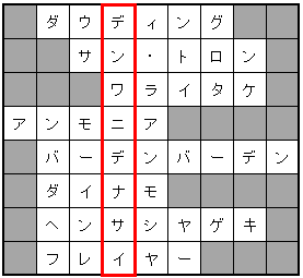 ▼以下のクイズの回答が上の表のどこかに横書きで入ります。回答の文字数を参考に入れてみてください。