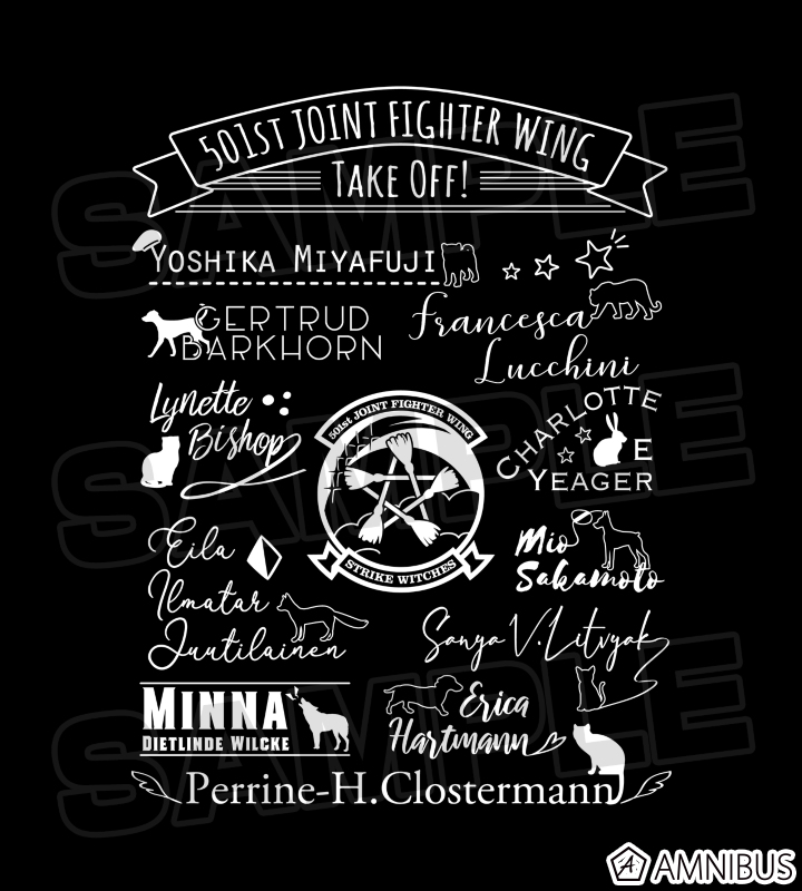 AMNIBUS「ストライクウィッチーズ 501部隊発進しますっ! Tシャツ」 価格:4180円 ⇒商品販売ページ(AMNIBUS) ※メンズ ⇒商品販売ページ(AMNIBUS) ※レディース 『ストライクウィッチーズ 501部隊発進しますっ!』より、Tシャツの登場です。 ウィッチの名前や使い魔のモチーフ、501部隊のロゴマークをレイアウトし、線画をメインとしたデザインで表現しました。 スタンダードなスタイルで、シーンを選ばずお使いいただけます。 日常…