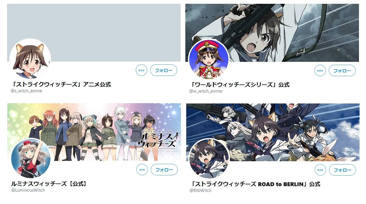 現在存在する「ストライクウィッチーズ」の公式Twitterアカウントは4つ