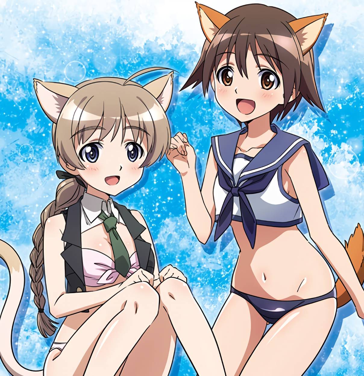 最新の描き下ろしイラストもおそらく糸井恵さんが描いていらっしゃると思うんだけど、タペストリーやクリアファイルでも使われてる芳佳とリーネが手をつないでるイラストも確かこの人が描いてて、糸井さんがこの作品にかかわって最初の頃に描いてるイラストなんですよね。比べるとさすがにこなれてきた印象。