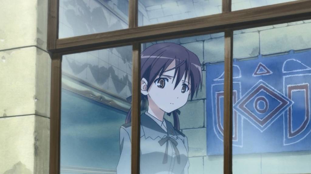 窓から芳佳ちゃんを見つめるバルクホルンさん。1期の4話でもありましたけど、全然意味合いが違うんだよなぁ。