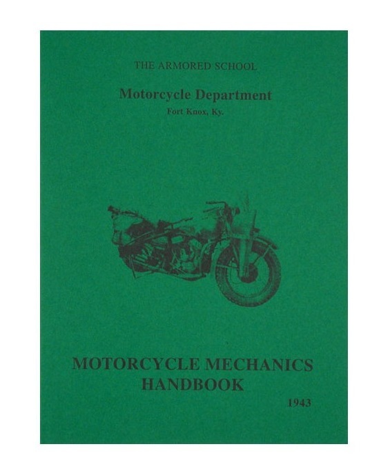 MOTORCYCLE MECHANICS HANDBOOKで検索すると緑色の本が出てきました。42年と43年にハーレーダビットソンの軍用バイクであるWLAとWLC用のマニュアルみたいです。