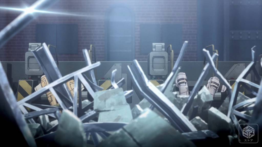 ネウロイの爆撃によって基地の格納庫が爆破されてしまい、シャーリーとルッキーニのストライカーユニットは破損してしまう事態に。ここもう少し2人のストライカーが破損してしまったことを分かりやすく説明した方がよかったんじゃないかなと思ったんですよね。カットももう少しストライカーに寄ってオイルとかが漏れてる感じとか。