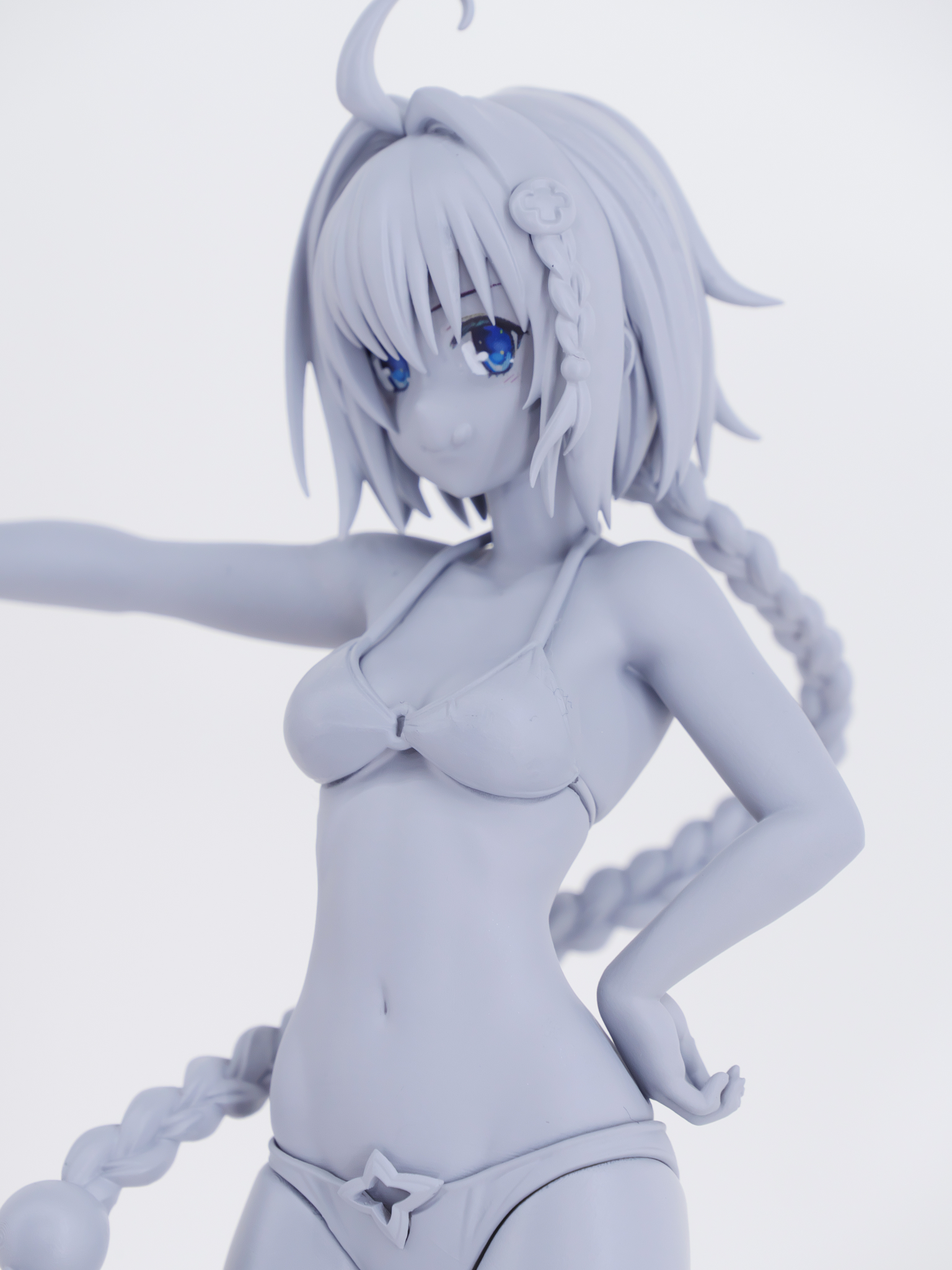 強いて言うならば、腋と身体がくっついているところがリアルじゃないところと、髪の毛のパーツの分かれ目がくっきり出すぎていたところくらいですかね、気になったところとしては。ただパーツの継ぎ目なんて部分はデコマスだからであって製品版ではなくなる方が多いので、ぜひ製品版ではこのあたりが改善されると2体くらいは買ってしまうと思います。というか普通に2個買うなこれ。