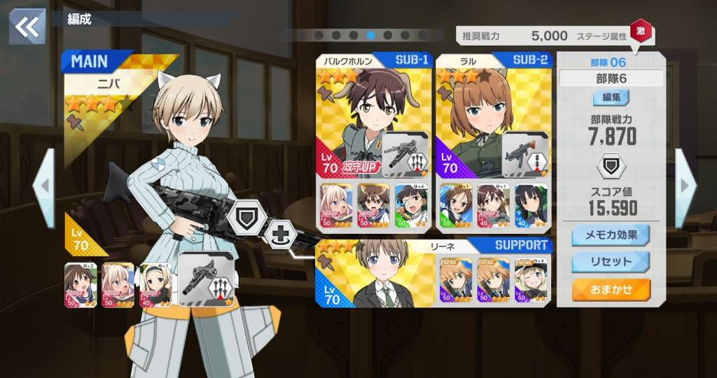 サブにはラル隊長とバルクホルンさんがいいですね。2人も巫女ロスマンと同じスキルですし、このスキルはサブのウィッチが使用してもメインに反映されるので、サブに置いておくといいと思います。