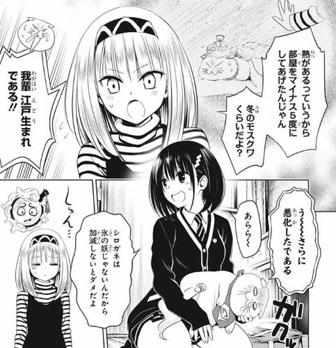 どうやら術者であるシロガネの体調不良によって、「性転紋」が不安定になっている模様。シロガネにとっても想定外の事態のようですが、優しいラチカちゃんは自分がシロガネに風邪をひかせたことから、自分のせいなので何かできないことはないかと気に病みます。なんて温かい氷の妖なんだ……。