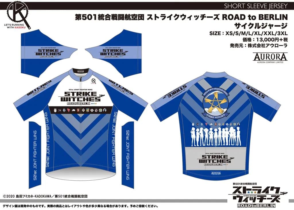 アウローラではこれまで「ストライクウイッチーズ Operation Victory Arrowサイクルウェアシリーズ」「ブレイブウイッチーズ サイクルウェアシリーズ」を発売し、いずれもご好評を頂いております。今回新作受注となるのは「ストライクウィッチーズ ROAD to BERLIN」をモチーフにしたサイクルジャージとサイクルビブショーツ/サイクルパンツ。501の新隊員・服部静夏を加えたRtB仕様の新デザインです。ストライクウィッチーズ ROAD to BERLINサイクルウェアで、501部隊の一員になった気分でサイクリングをお楽しみ下さいませ。
