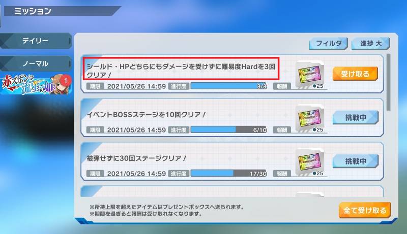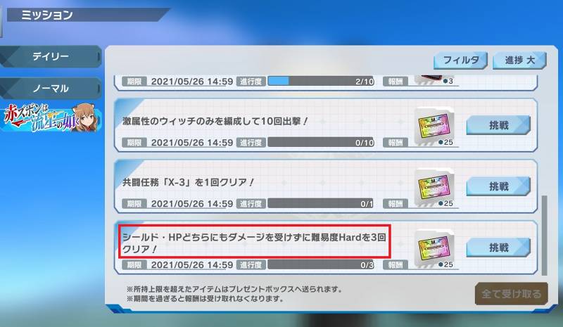 そのミッションの中に「シールド・HPどちらにもダメージを受けずに難易度Hardを3回クリア!」というお題があるのですが、これが実は難しいんですよね。