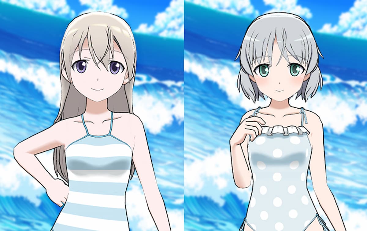 そもそも前回の水着イラストのペリーヌ&リーネちゃんは布面積の小ささには定評があったので、この路線を貫くかと思いきや、エイラも含めて大人しめな水着……。アップルにでも怒られたか?🤔🤔🤔