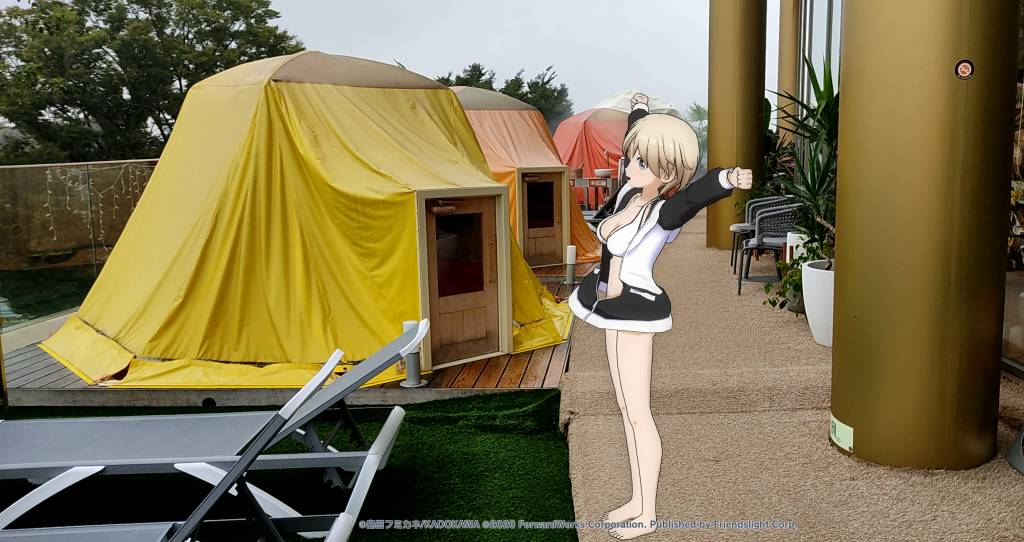 ここにはこんな感じでテントサウナが置いてあるんですね。プライベート空間にすべく開店時間に行ってきました。