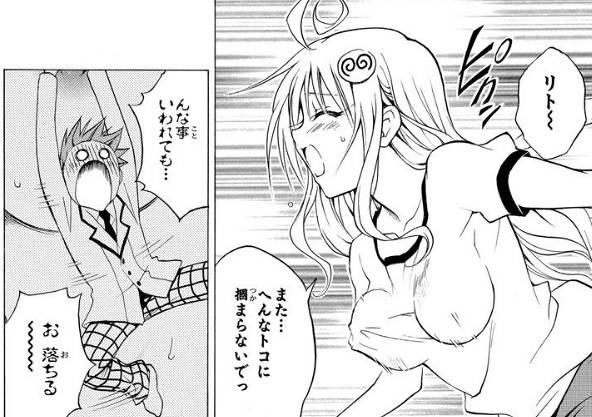▼②小っちゃくなったリトがララの乳首にぶら下がる