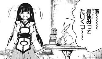 夏休みということもあり、真昼間から修行に精が出る祭里ちゃん。修行場にやってきたすずと、先日のプールの件もあったことから二ノ曲パイセンの女性苦手話をしていると、二ノ曲パイセンに仕える妖・ポ之助が2人のもとに慌てた様子で駆け込んできますが、その後ろにいたのはなんと……