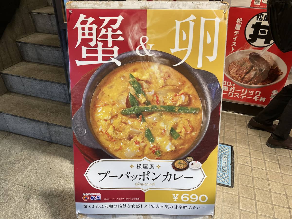 【松屋】カニ(カマ)と卵のカレー、その名も「プーパッポンカレー」が新登場! 肉がない分サラッと食べられるかも