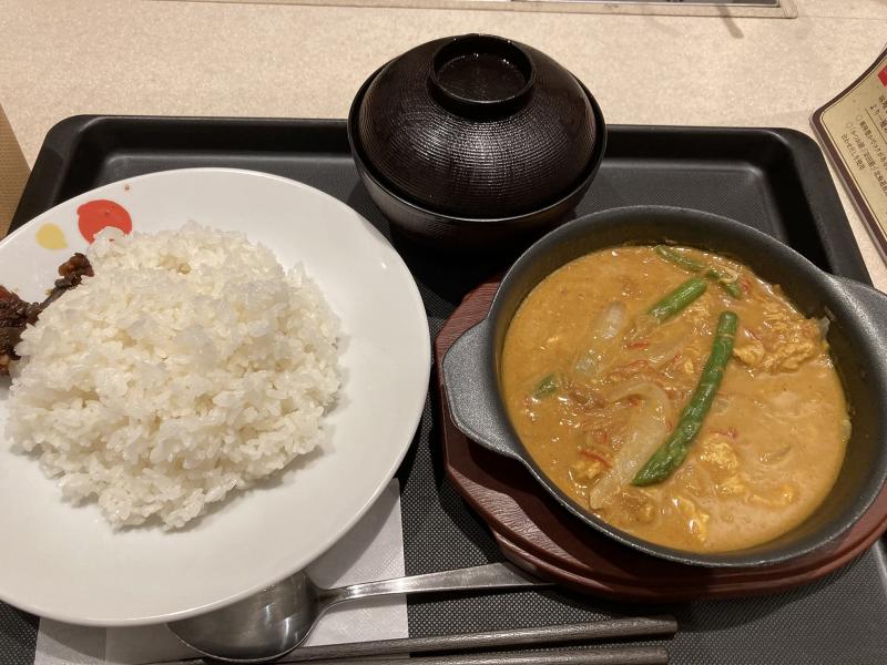 松屋でタイのカレーといえばマッサマンカレーがとても美味しかったので、このプーパッポンカレーも美味しいに違いない! 期待を込めて、いざ松屋へGO!!!!