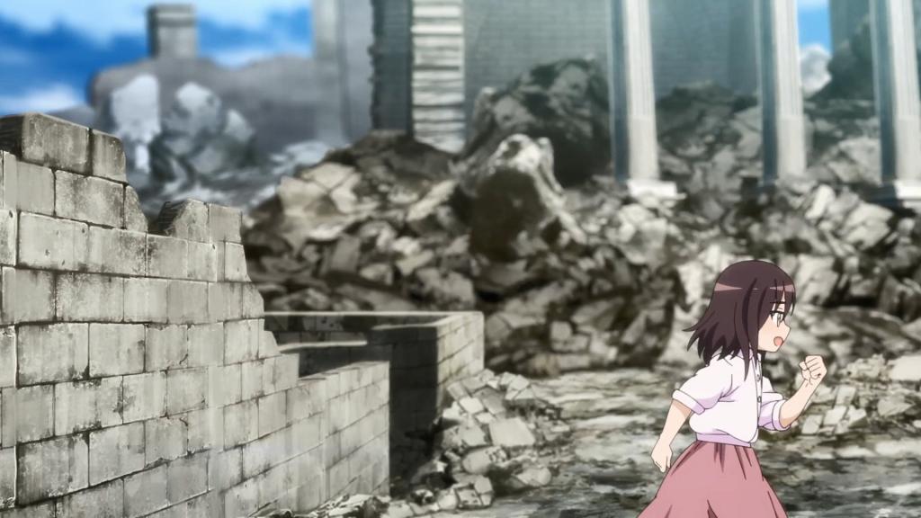 ネウロイの手でがれきの山と化したパリ。皮肉にも我々の世界では人類同士の戦いであったことから、花の都・パリは戦火から免れることができましたが、ネウロイにはそういった感情がありません。