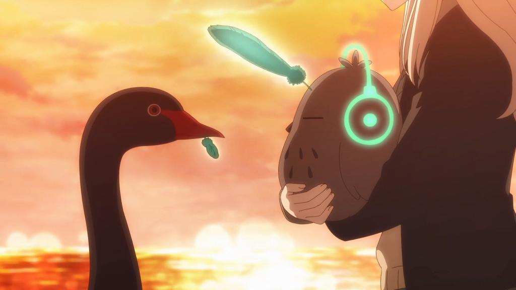 エリーから貰った「預かりもの」を見たモフィが向かった先には、エリーがガリアで出会ったコクチョウとその群れ。