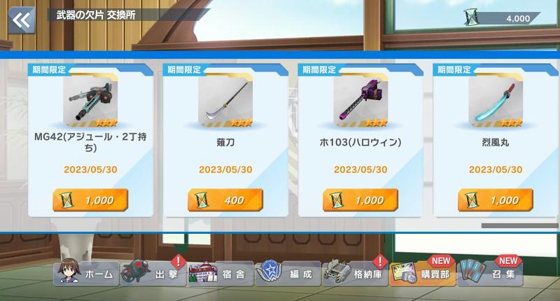 今回のイベントで「武器の欠片」は入手できますので、ハロウィン 黒田那佳を使いたい人はもちろん、使わなくてもこのショットはこの交換所限定ですので、マストバイな武器だと思います。