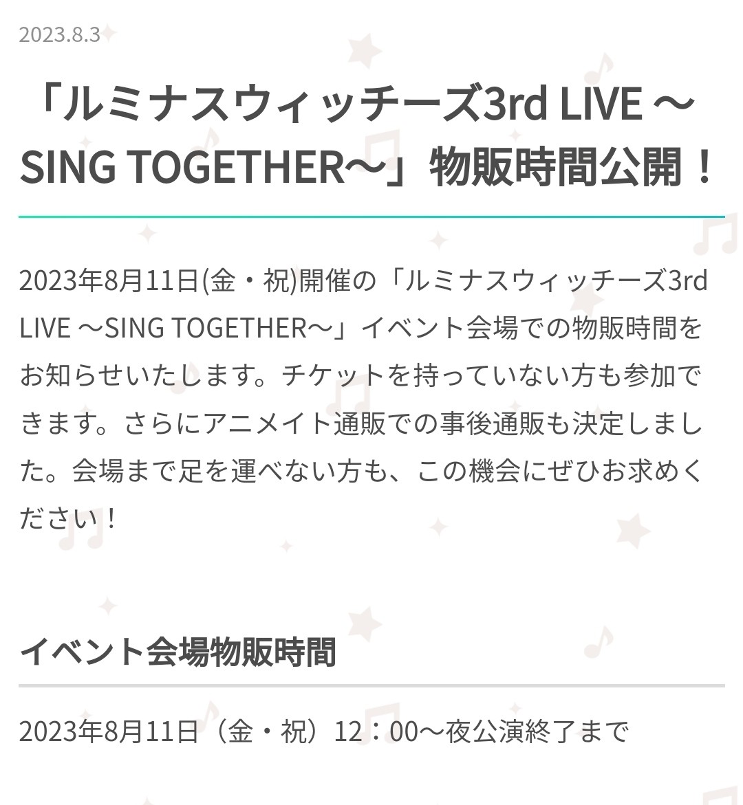 ②3rdライブの物販開始時間を昼の部開場30分前に設定