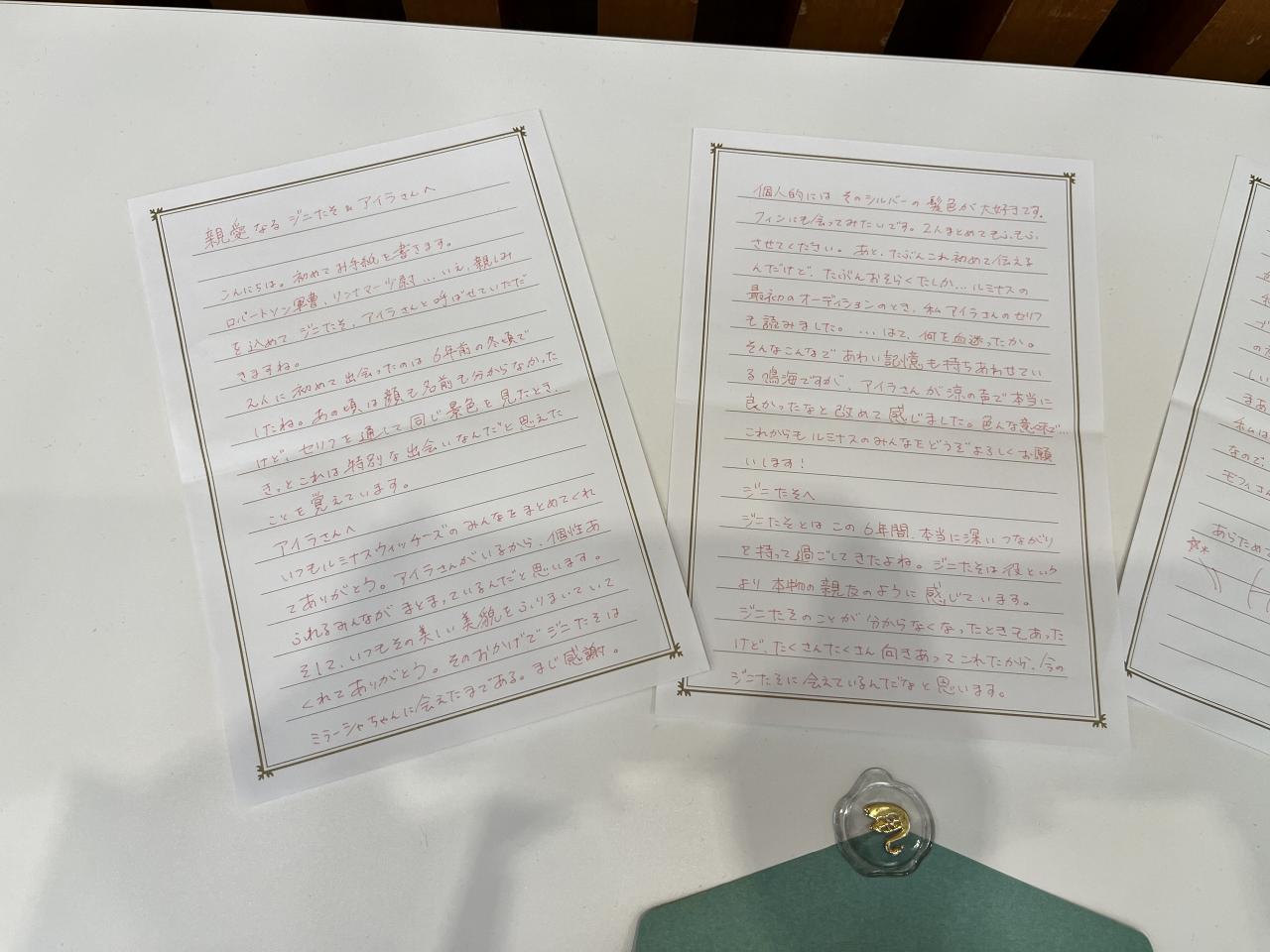 キャストさんがそれぞれジニーとアイラ2人に対して書いてきたお手紙を読むコーナー。