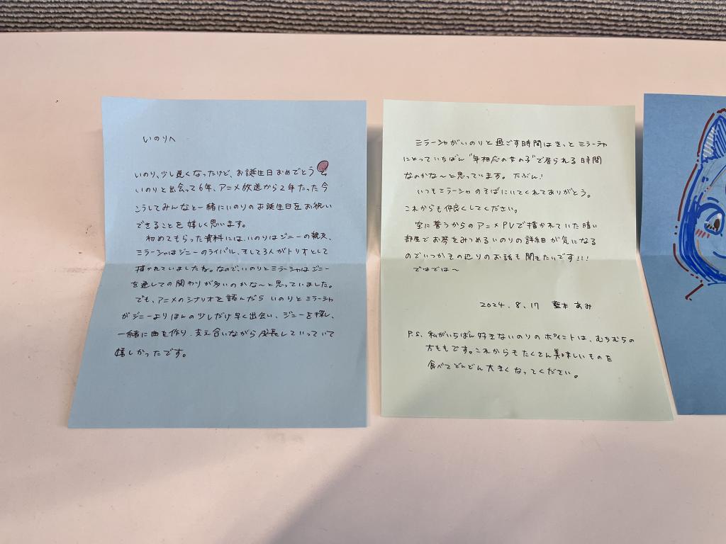 今回はいのりのお誕生日ということで、第1部は藍本さん、第2部は細川さんによる直筆のお手紙が披露されました。……ふと思ったけど、これ第3回はまた藍本さん書いてくれるのかな。
