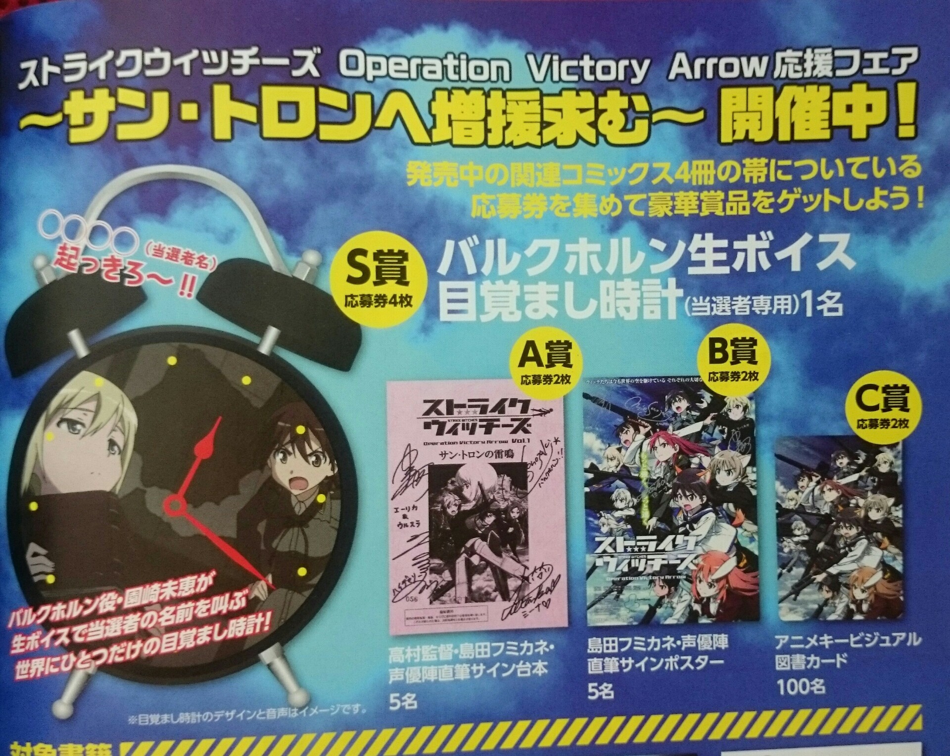 バルクホルン生ボイス目覚まし時計やサイン入り台本などが抽選で当たるスト魔女コミックス「サン・トロンへ増援求む」フェアの締切は今月末まで!