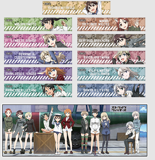描きおろしの立絵イラストを使用した、ウィッチ11人の各マフラータオルです。