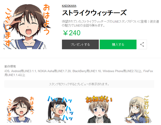 ストライクウィッチーズのLINEスタンプがついに発売!「ムリダナ」や「だからなんなの!」に加え、「巨匠!」のスタンプも! ワールドウィッチーズ-ニュース- 2016.06.23 ストライクウィッチーズ LINEスタンプ価格:240円⇒スタンプ購入ページ 待望されていたストライクウィッチーズのLINEスタンプがついに登場!彼女達の魅力でLINEの会話も弾みます。