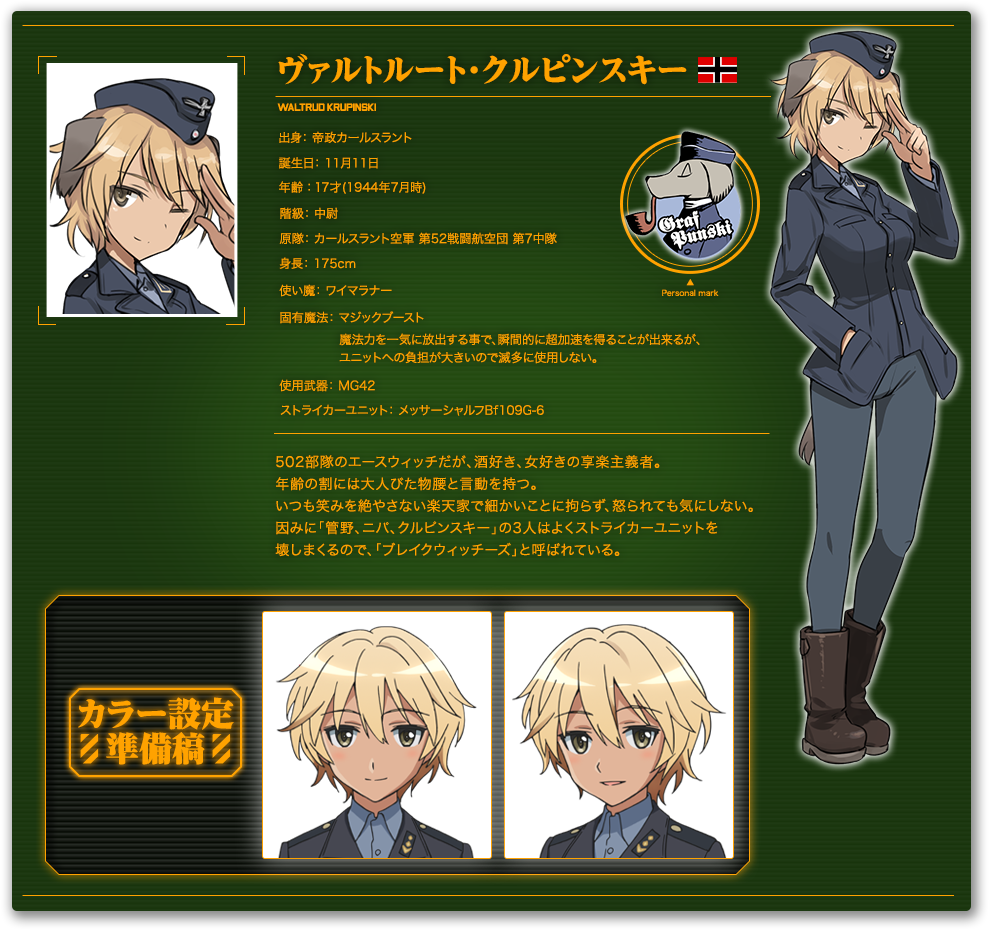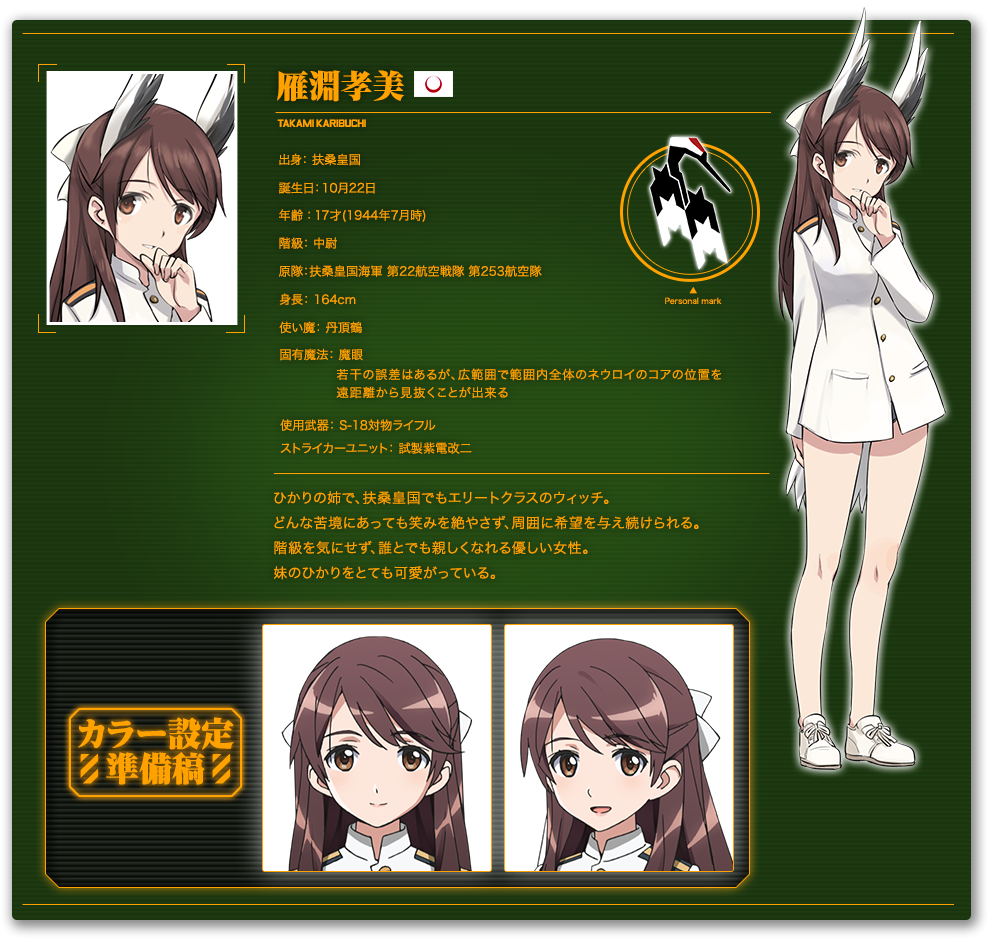 【ブレイブウィッチーズ】伯爵とラル隊長の固有魔法が新たに判明!さらに雁淵孝美さんは「魔眼」の持ち主! ワールドウィッチーズ-ニュース- 2016.07.01 固有魔法:マジックブースト魔法力を一気に放出する事で、瞬間的に超加速を得ることができるが、ユニットへの負担が大きいのでめったに使用しない。 固有魔法:偏差射撃発射から着弾までのタイムラグの間に目標がどう動くかを予測して正確に射撃することができる。 固有魔法:魔眼若干の誤差はあるが、広範囲で範囲内全体のネウロイのコアの位置を遠距離から見抜くことができる