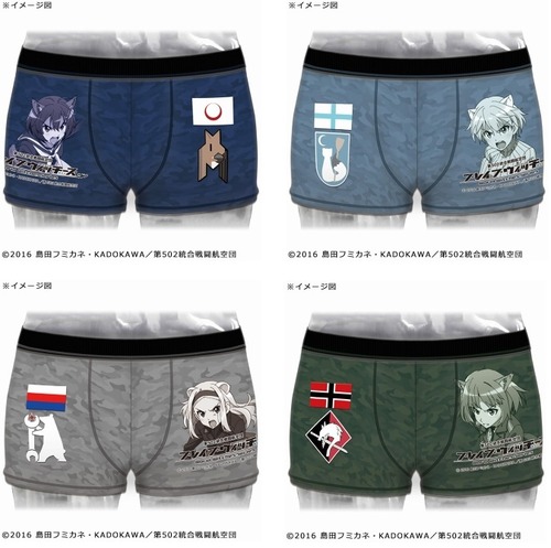 11月末に「ブレイブウィッチーズ」のボクサーパンツが発売決定!ひかり、ニパ、サーシャさん、ラル隊長の4種