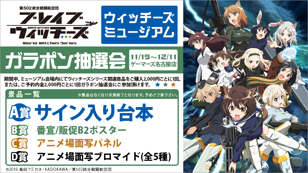 TVアニメ「ブレイブウィッチーズ」の映像発売を記念して「ウィッチーズ」ミュージアムがゲーマーズ名古屋店で開催決定!