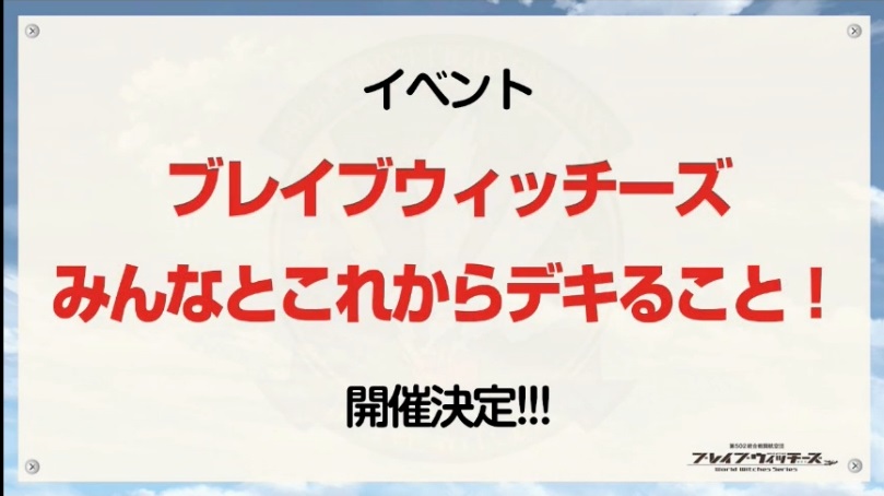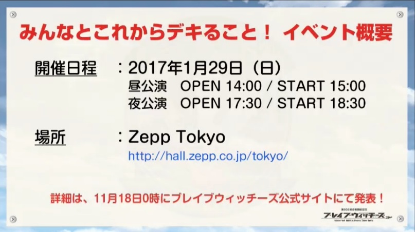 【速報】イベント「ブレイブウィッチーズ みんなとこれからデキること!」が2017年1月29日にZepp Tokyoにて開催決定! ワールドウィッチーズ-ニュース- 2016.11.17 しかし会員限定をここでも使ってくるとは…