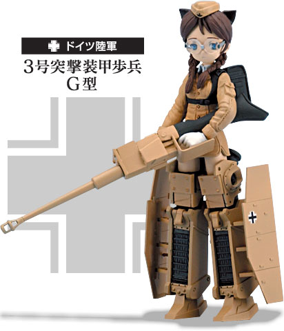 左のカールスラントウィッチと真ん中のスオムスウィッチが穿いているのはⅢ突のG型。右のオラーシャウィッチが穿いているのはT-34。
