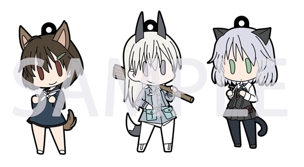 合わせて特典つきの前売り券も同時発売いたします。 特典は島田フミカネ描き下ろしSDを使用したラバーマスコットで、ひかり・エイラ・サーニャの3種類からランダムで1種付属いたします。