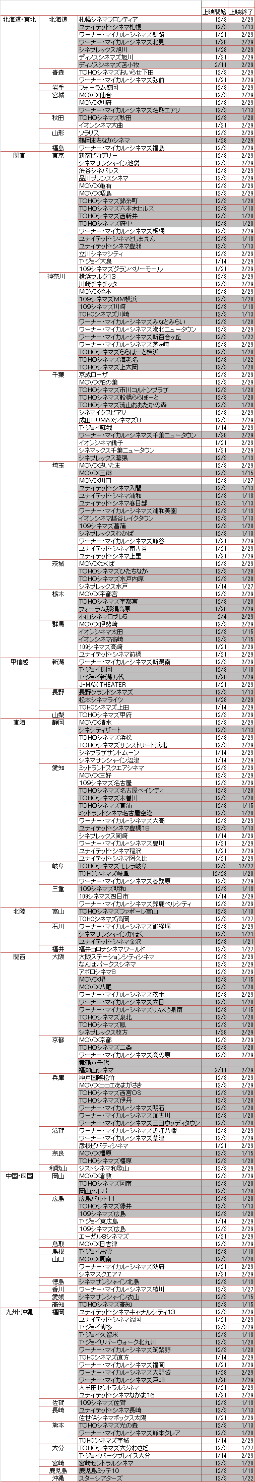 公式の上映館情報を反映しただけだから、まだ入ってないね