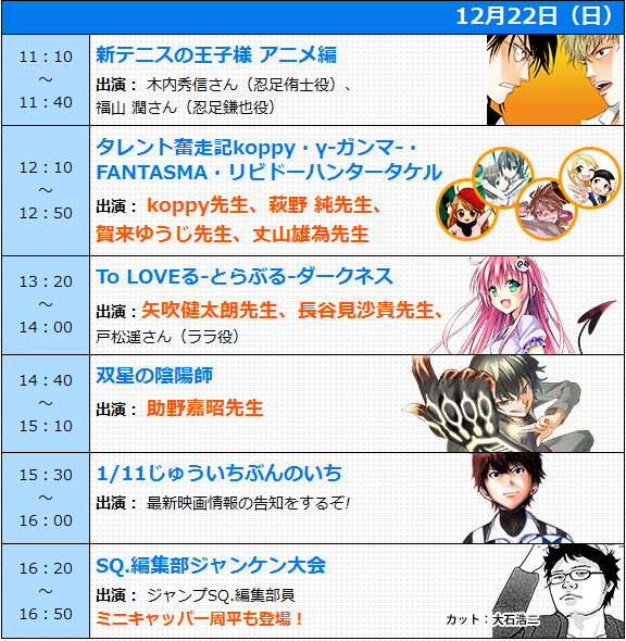 もちろん大人気漫画「ミニキャッパー周平」で有名なSQ編集部の周平さんも登場するSQじゃんけん大会も!あ、あと我らが小川さんも出るはずです。