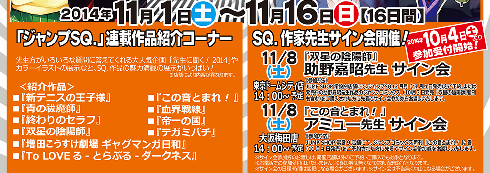 11月1日からはジャンプショップにてSQ7周年フェアも開催!