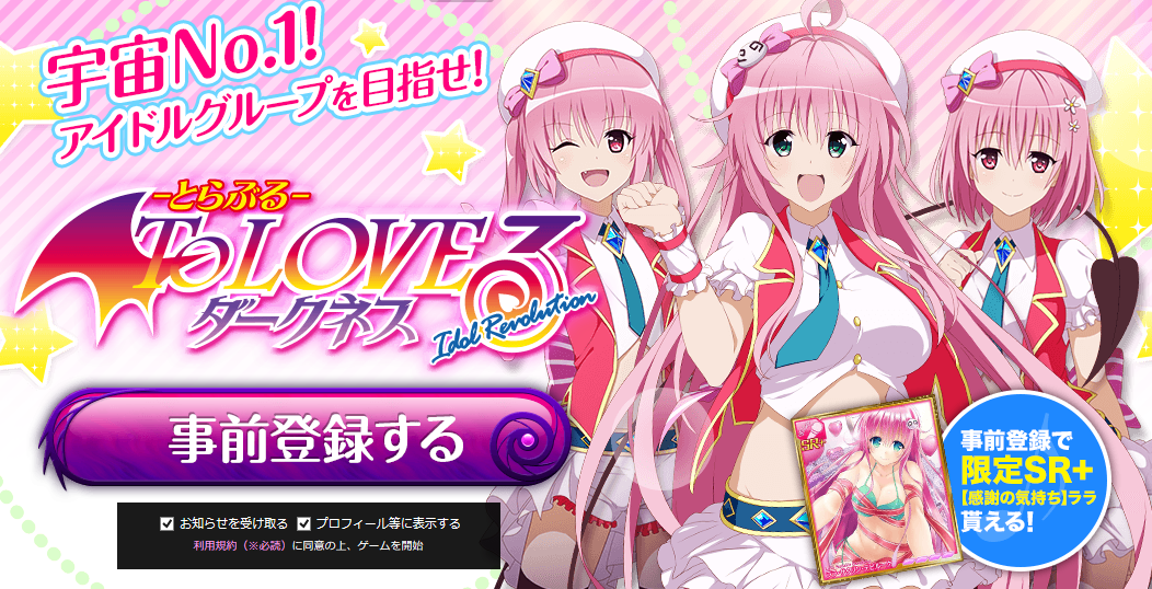 gloopsとDMM.comは本日(2015年2月26日),PC向けブラウザゲーム「To LOVEる-とらぶる- ダークネス -Idol Revolution-」を配信すると発表し,事前登録の受付を開始した。