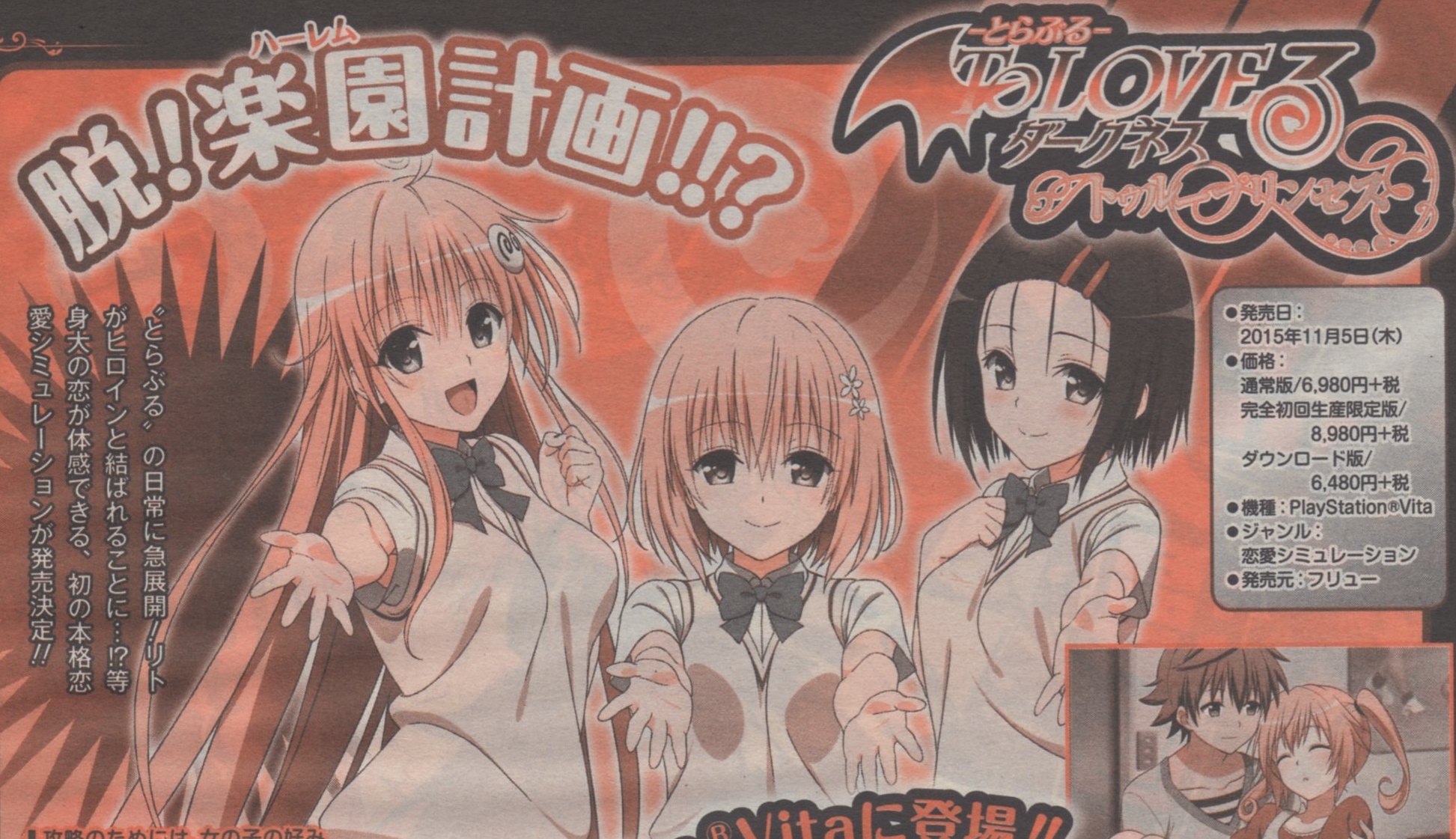 去年末に開催されたジャンプフェスタ2015にて発表されたPSVita用ゲームソフト「To LOVEるダークネス トゥループリンセス」の概要がようやく発表されました。