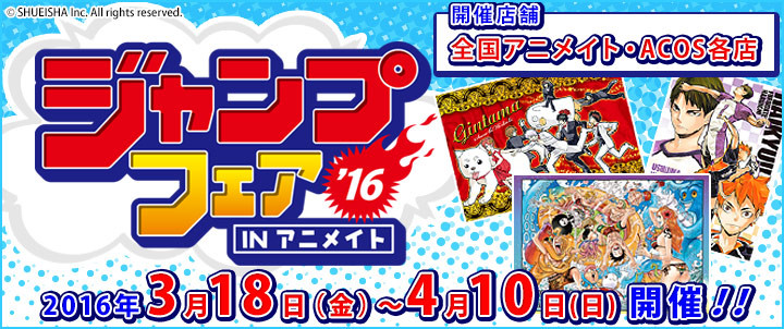 期間中、関連商品をご購入、ご予約のお客様に『ジャンプフェアセレクション(全53種類・予定)』をランダムでプレゼントいたします。特典のお渡し条件は下記になります。