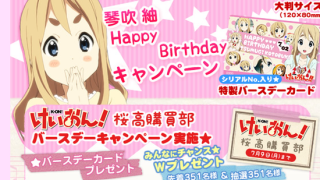 けいおん! 今年もムギちゃんの誕生日キャンペーン開催! 先着351名にバースデーカードプレゼント!